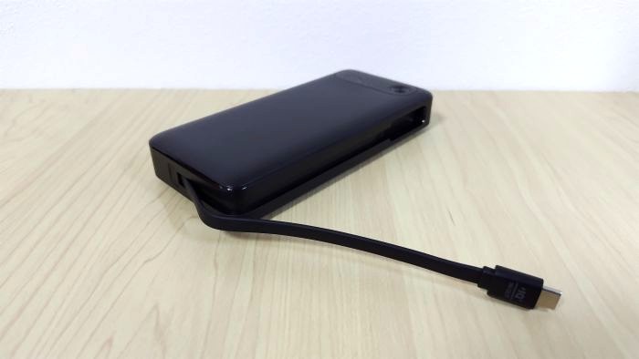内蔵ケーブル(入/出力)と別にUSB-Cポート(入/出力)とUSB-Aポート(出力)を搭載。